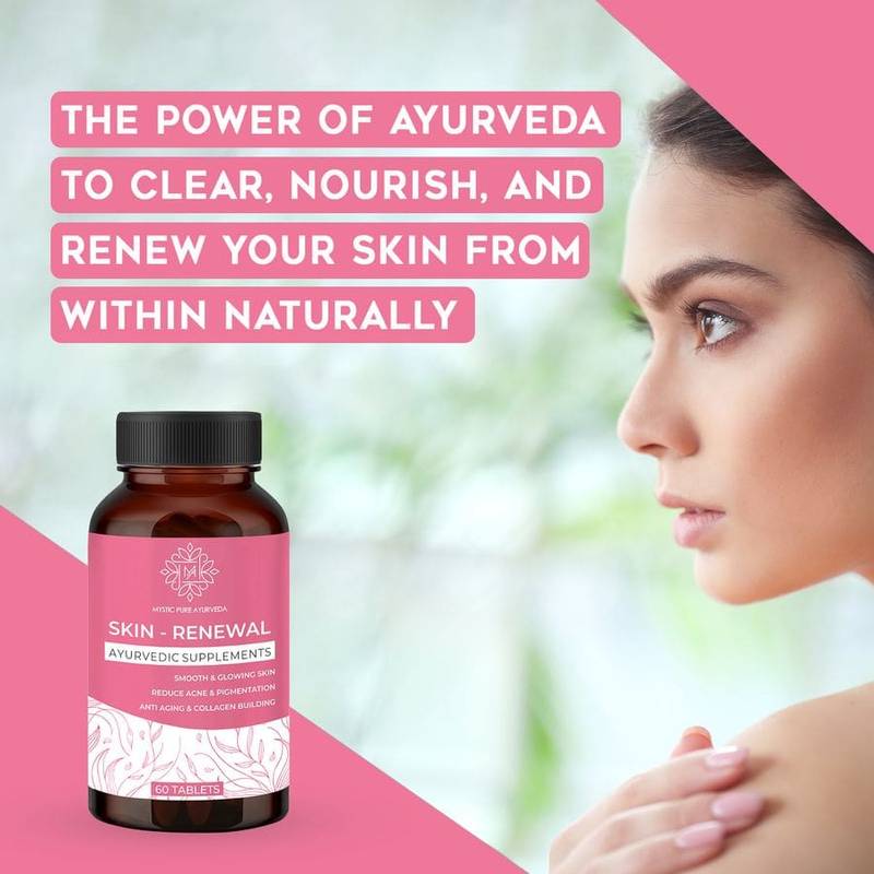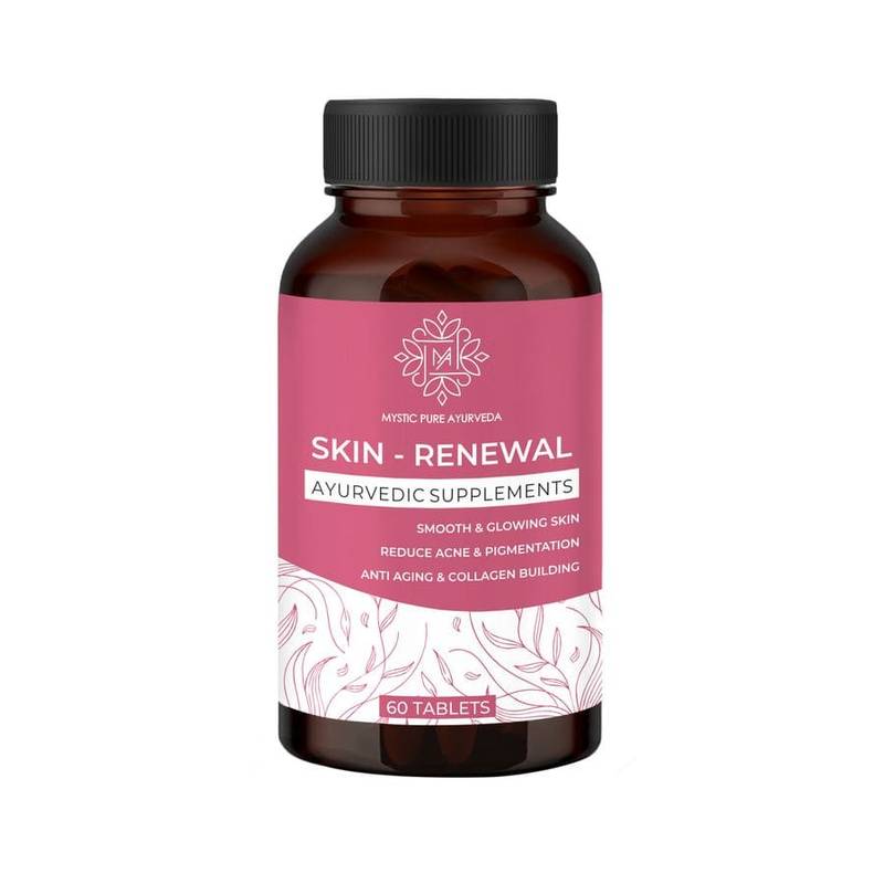 Mystic Pure Skin Renewal Tablets offer a natural and effective solution for revitalizing your skin. Packed with potent herbs and minerals, these tablets work synergistically to address various skin concerns, including pigmentation, blood detoxification, antioxidant protection, vitamin C supplementation, and collagen building. The unique blend of Ayurvedic ingredients helps to nourish and rejuvenate your skin from within, promoting a healthy, radiant complexion. Our tablets are crafted using traditional Ayurvedic techniques to ensure maximum potency and purity. Experience the transformative power of Ayurveda and unlock the secrets to youthful, glowing skin with our Ayurvedic Skin Renewal Tablets.